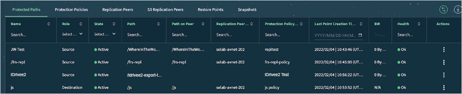 - The newly created path is listed under Protected Paths. It goes through Initializing, Initial Sync, and finally into the Active state.